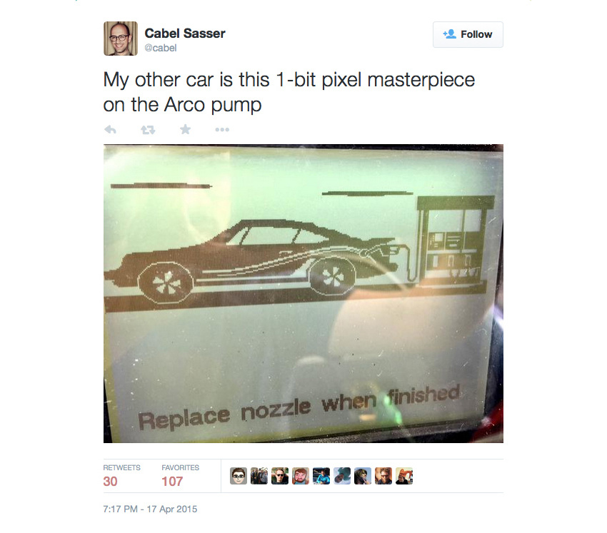When we discovered Cabel's tweet having some fun with an out dated graphic on one of ARCO's gas pumps, we decided to have a car 3D-printed for him as a gift.